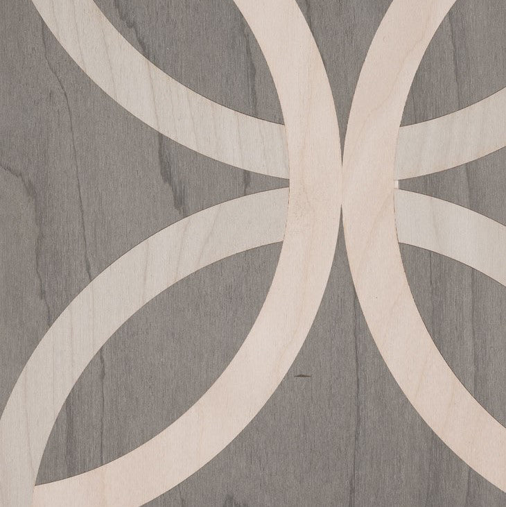 This range of geometric and burr inspired inlays is created using the latest laser cutting techniques. Dyed veneers are combined to create bold pattern in an array of soft neutrals. Patterns range from precise lines and curves to more organic shapes.
