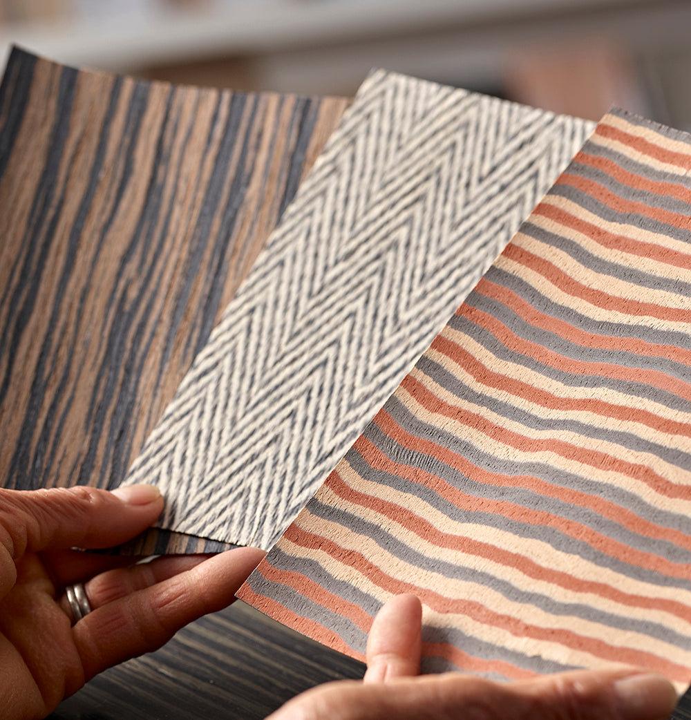 Constructed entirely from natural wood our range of engineered veneers by Tabu bring a host of additional benefits. Unique colour combinations, pattern and texture are all delivered by precision engineering combined with Italian design flair. We also offer selected engineered veneers in our natural collection. Find out more about our range and how they are produced here.